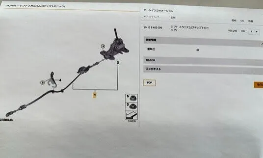 BMW純正部品を用意し、周辺のユニットを慎重に分解しながらシフトアッセンブリーを取り外します。
