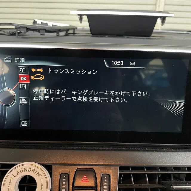さらに、メーターには「車両動き出し注意」、iDriveモニターには「トランスミッション」の警告も出ており、シフト操作系統のトラブルが疑われる状態でした。
